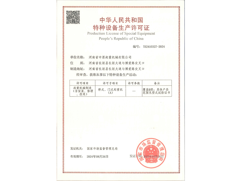 特種設(shè)備生產(chǎn)許可證