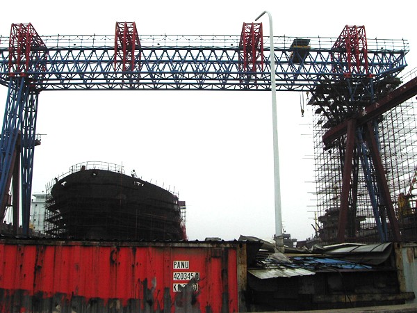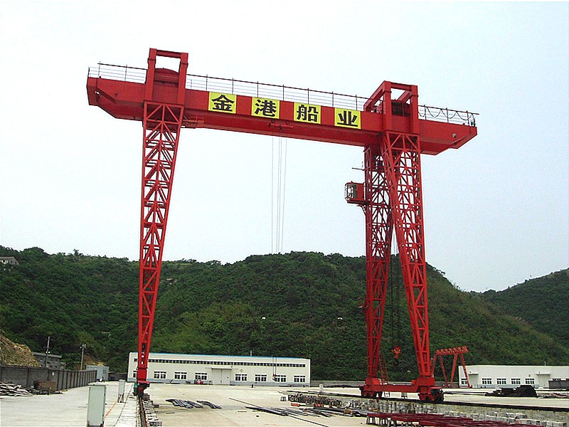 造船門式起重機(jī)適用于造船廠制作場所(船塢、船臺(tái))進(jìn)行造船作業(yè),具有單吊、雙點(diǎn)抬吊、三點(diǎn)抬吊、空中翻轉(zhuǎn)吊件和輕載(≤50%滿載)快速升降、低風(fēng)速(≤8m/s)快速運(yùn)行等多種作業(yè)功能,在起重機(jī)整體吊裝